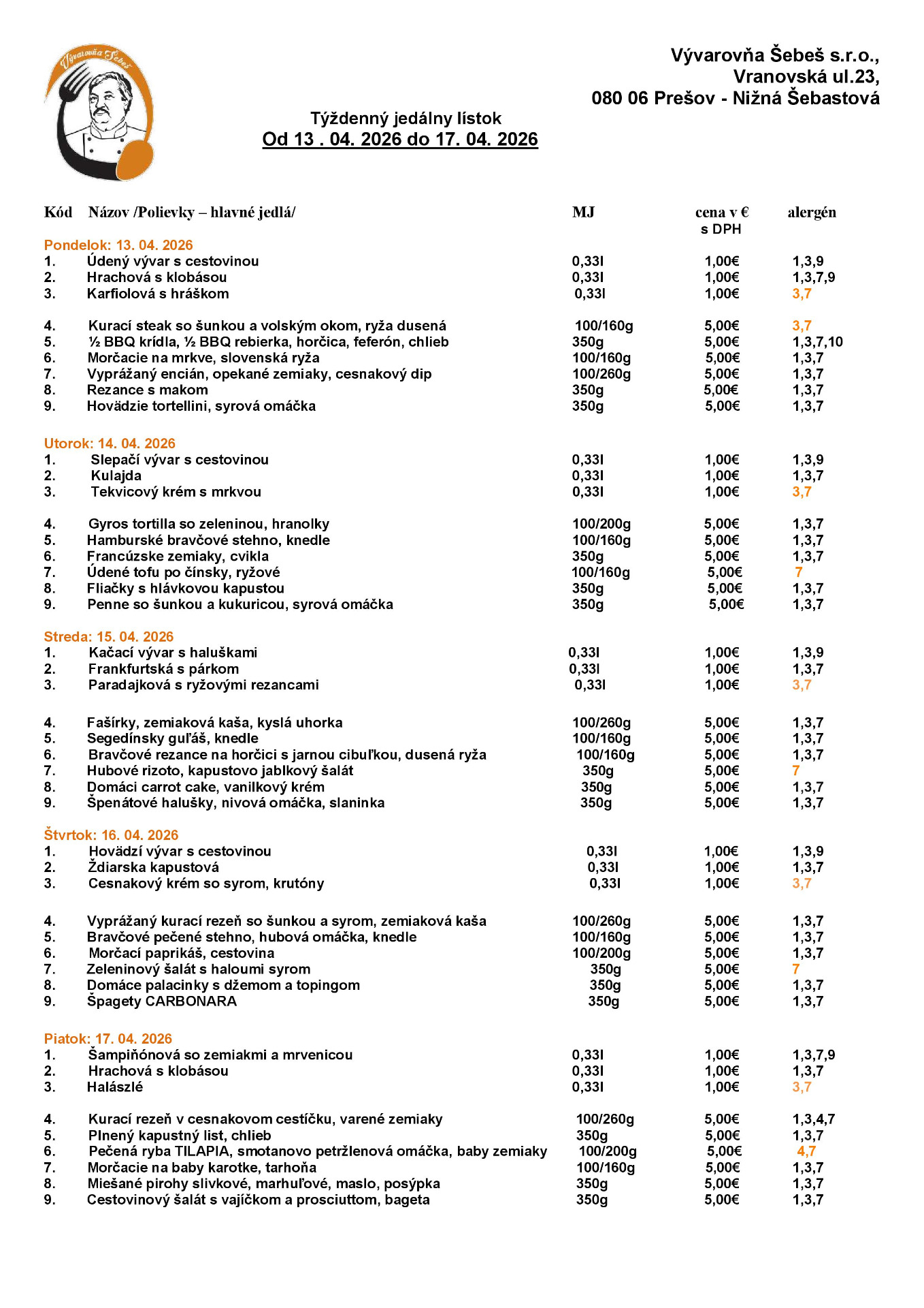 Obedy si môžete objednať do 8:30 na emailovej adrese: vyvarovnasebes@gmail.com,